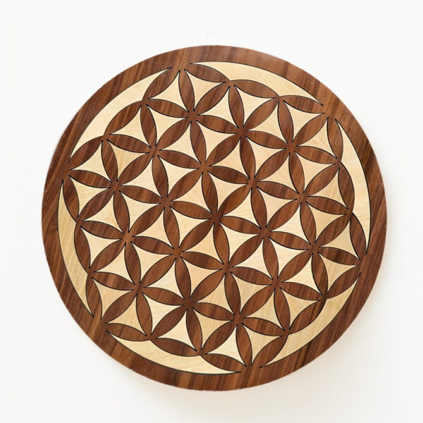 Fleur de Vie en deux couleurs style marqueterie, à poser ou suspendre.